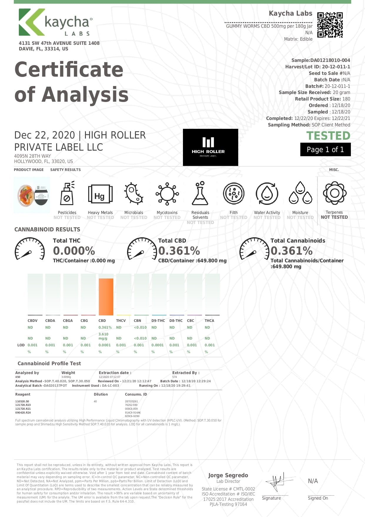 Corn Syrup (From Corn), Sugar (From Beets), Water, Gelatin, Citric Acid, Artificial Flavor, Lactic Acid, Pectin (Derived from Fruit), Titanium Dioxide (Color), FD&C Red #40, HEMP EXTRACT CANNABIDIOL (CBD), COCONUT OIL.